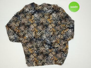 Bluzka damska Wallis, rozmiar XL. - Krój: luźny, lekko A‑linia; dekolt karo z gumką i wiązaniem; krótkie, falujące rękawy. - Tkanina: cienka, przewiewna, półprzezroczysta. - Wzór: botaniczny – wiś...