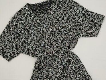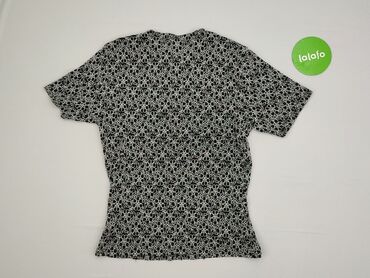 Bluzka damska Wallis, rozmiar XL. - Krój: luźny, lekko A‑linia; dekolt karo z gumką i wiązaniem; krótkie, falujące rękawy. - Tkanina: cienka, przewiewna, półprzezroczysta. - Wzór: botaniczny – wiś...