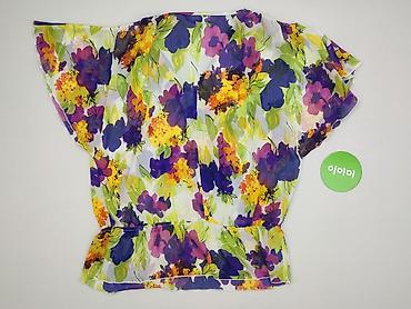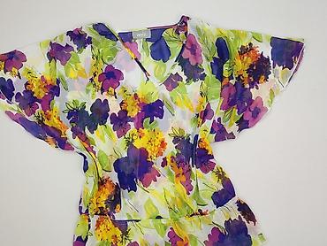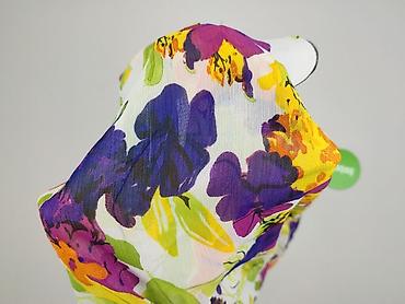 - Wzór: wyrazisty, kwiatowy nadruk w odcieniach fioletu, żółci, zieleni i różu na jasnym tle.