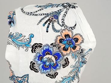 - Kolorystyka i wzór: biała baza z bogatym, kwiatowo-orientalnym printem w odcieniach błękitu, granatu, czerni i moreli