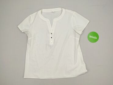 Biała bluzka damska VIZZY Collection - Rozmiar z metki: 54 - Materiał: 100% bawełna (cienka, przewiewna tkanina) - Krój: prosty, lekko luźny, krótszy tył z małym rozporkiem po bokach - Rękaw: krót...