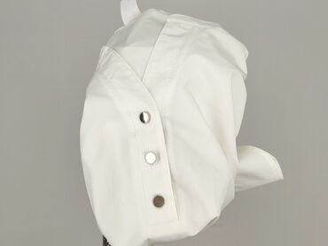 Biała bluzka damska o kroju oversize, zapinana na guziki. - Krój: krótki, szeroki, z opuszczoną linią ramion; rękawy krótkie, luźne - Dekolt: okrągły z rozcięciem przy zapięciu - Zapięcie: listwa ...Stan: