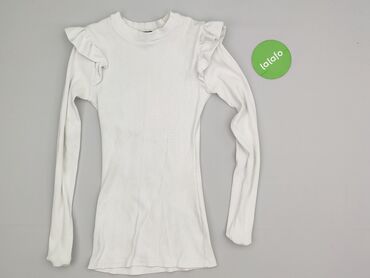 Biała bluzka damska z lekkiej, przewiewnej tkaniny - Rozmiar: S (metka) - Materiał: 100% bawełna - Fason: luźniejszy, tunikowy - Rękaw: 3/4 zakończony mankietem - Dekolt: w kształcie litery V z lis...