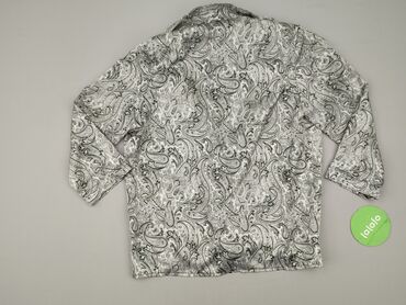 Bluzka damska z długim rękawem, w szaro‑czarny wzór paisley. - Krój: lekko taliowany, zaokrąglony dół - Dekolt: okrągły z krótką patką i ozdobnym metalowym oczkiem - Rękawy: długie - Wzór: gęsty, ...