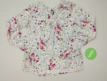 Bluzka damska z lekkiej, przewiewnej tkaniny w kwiatowy print. - Krój koszulowy, zapinana z przodu na guziki - Dekolt w kształcie litery V bez klasycznego kołnierza - Rękawy długie z mankietami za...
