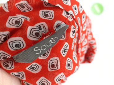 Długi rękawCzerwona bluzka damska marki South, ozdobiona białym wzorem w nieregularne kwadraty. Charakteryzuje się długimi, luźnymi rękawami zakończonymi mankietami zapinanymi na guziki oraz kołnierzykiem typu stójka. Zapięcie na guziki na całej długości z przodu dodaje jej funkcjonalności. Delikatny, lekki materiał sprawia, że jest idealna do noszenia na co dzień, zapewniając komfort i swobodę ruchów. Dobrze sprawdzi się w stylizacjach casualowych, jak i bardziej eleganckich, w zależności od dobranych dodatków.