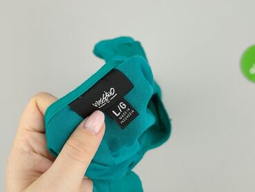 Bluzka damska z długim rękawem, rozmiar L. - Kolor: turkus/teal - Krój: luźniejszy, lekko wydłużony tył; dekolt w serek (V-neck) - Detale: zakładka na przodzie i na plecach, rękawy zakończone manki...