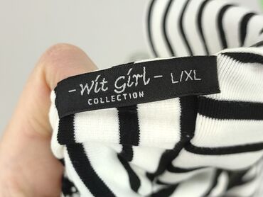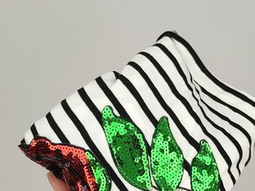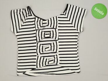 Damska bluzka w paski - Fason: luźna, z krótkim rękawem typu kimono/dolman - Wzór: pionowe paski czarno‑białe - Dekolt: okrągły, wykończony czarną lamówką - Detale: naszywana kieszonka z przodu z ...Stan: