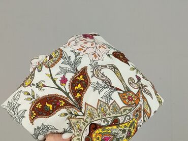 - Wzór: bogaty, roślinno-ornamentalny print na jasnym tle; motywy kwiatów (m.in. w odcieniach fuksji, różu, żółci, zieleni i brązu)