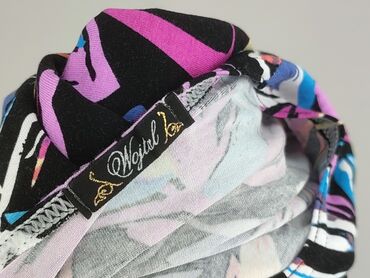 - Wzór: intensywny, wielobarwny print kwiatowo-abstrakcyjny na czarnym tle (odcienie różu, niebieskiego, turkusu, fioletu, pomarańczu, bieli).
