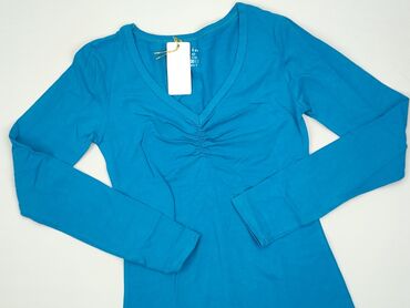 Bluzka damska BASIC Feel Good - Fason: klasyczny longsleeve - Dekolt: w serek (V-neck) - Rękaw: długi - Kolor: turkusowo-niebieski - Rozmiar z metki: M / 38 - Materiał: miękka, elastyczna dzianina...
