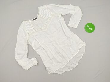 Bluzka damska Yessica (C&A) - Kolor: biały - Fason: lekko luźny, z długim rękawem - Dekolt: w kształcie litery V, wykończony ozdobnym, plecionym lamowaniem - Detale: ażurowe wstawki wzdłuż raglano...Stan: