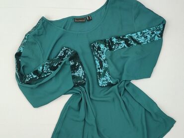 - Rękawy: 3/4, zdobione efektownymi pasami cekinów w odcieniach turkusu (na ramionach i mankietach)