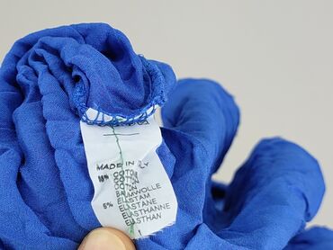 Bluzka damska z krótkim rękawem w kolorze kobaltowym. - Materiał: 50% bawełna, 50% jedwab (etykieta na zdjęciu) - Lekko marszczona/krepa faktura tkaniny – przewiewna i miękka - Dekolt okrągły - As...