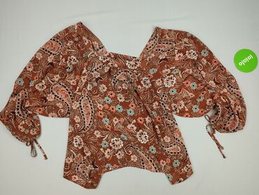 Bluzka damska PRIMARK z kwiatowym wzorem - Marka: Primark - Rozmiar z metki: EU 42 (UK 14, USA 10) - Krój: luźna, lekko rozkloszowana; zaokrąglony dół, krótkie szerokie rękawy - Dekolt: stójka z d...