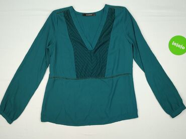 Bluzka damska z długim rękawem w kolorze butelkowej zieleni/teal. - Fason: luźny, lekko rozszerzany na dole - Dekolt: w kształcie litery V z szeroką klapą/kołnierzem - Rękawy: długie - Materiał: ...