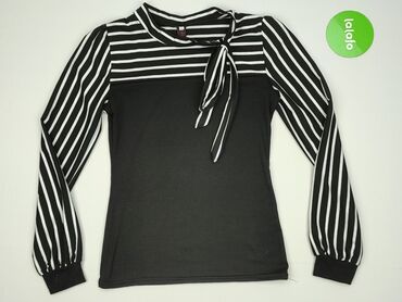 Czarna, prążkowana bluzka z długim rękawem - Fason: dopasowany, okrągły dekolt - Materiał: elastyczna dzianina w drobny prążek - Detal: okrągła naszywka z przodu z napisem „JUST INVITE MILANO” i sy...