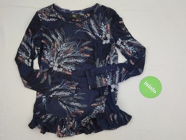 Bluzka damska Next - Model: longsleeve z efektownym tyłem - Kolor przodu: granat/ciemny stalowy z drobnymi, błyszczącymi kropkami - Tył i dół: tkanina w kwiatowy wzór (odcienie granatu, różu, biel...