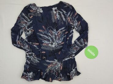 Bluzka damska Next - Rozmiar z metki: 12 (UK) - Kolor: jasny błękit - Wzór: drobne białe kwiatuszki na całej powierzchni - Fason: lekko luźny, zaokrąglony dół - Rękaw: długi - Dekolt: w serek z fa...