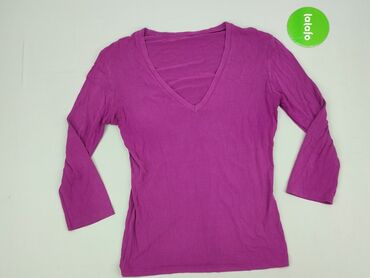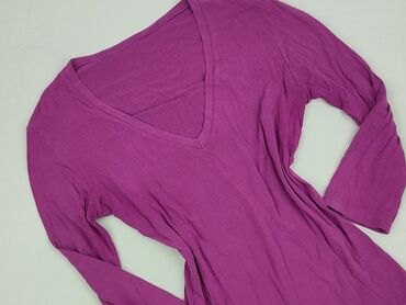 Fioletowa bluzka z długim rękawem - Klasyczny, okrągły dekolt - Prosty krój, lekko dopasowany - Jednolity kolor: głęboki fiolet/śliwka - Miękka, elastyczna dzianina bawełniana z domieszką elastanu...Stan: