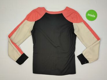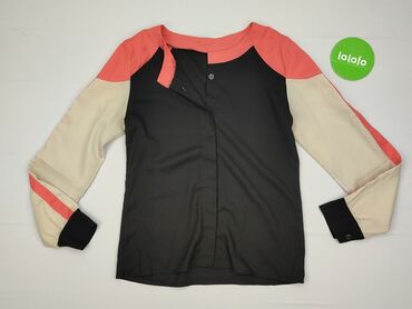 Długi rękawTa damska bluzka z długim rękawem wyróżnia się wielokolorowym wzorem z dominującym czarnym korpusem, połączonym z kontrastującymi rękawami w kolorze beżowym oraz wstawkami w odcieniu koralowym na ramionach i zewnętrznych stronach rękawów. Bluzka posiada zaokrąglony dekolt i zapięcie na guziki, co zapewnia wygodne użytkowanie. Długie rękawy zakończone są mankietami zapinanymi na guzik, co dodaje elegancji. Jej unikalny design sprawia, że jest to wszechstronny element garderoby, idealny zarówno do codziennych, jak i bardziej formalnych stylizacji.