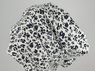 Długi rękawBluzka damska z długim rękawem, wzór drobnych granatowych motywów na białym tle (efekt przypominający mikrowzory/animal).