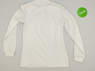 Biała bluzka damska z długimi rękawami, charakteryzująca się plisowanym materiałem. Bluzka ma okrągły dekolt z rozcięciem z tyłu zapinanym na guzik, co ułatwia zakładanie. Rękawy zakończone są mank...Stan: