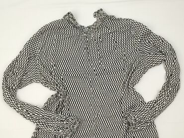 Bluzka damska marki MY OWN w rozmiarze 42, charakteryzująca się czarno-białym wzorem geometrycznym. Fason bluzki jest luźny z szerokimi rękawami typu kimono i elastycznym ściągaczem w talii, co zap...