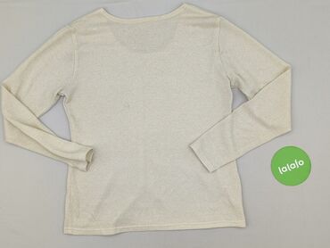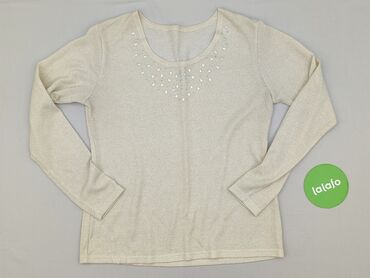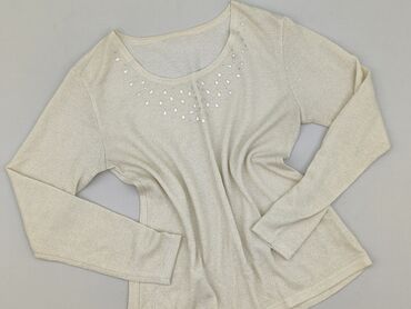 Długi rękawBluzka damska z długim rękawem w kolorze ecru/kremowym. Miękka, lekko elastyczna dzianina o drobnym splocie, przyjemna w dotyku. Okrągły dekolt ozdobiony aplikacją z metalicznych, srebrnych dżetów w kształcie łezek i kropek, rozmieszczonych w delikatny wzór przy linii szyi. Fason prosty, lekko dopasowany, długość do bioder. Idealna na co dzień i do elegantszych stylizacji – łatwo łączy się z dżinsami, spódnicą czy spodniami materiałowymi.