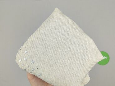 Biała damska bluzka z krótkim rękawem, ozdobiona srebrnymi dżetami - Oversize’owy, luźny fason z opadającym rękawem - Szeroki, zaokrąglony dekolt - Dekoracyjny wzór z drobnych, srebrnych nitów/dże...