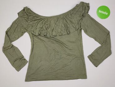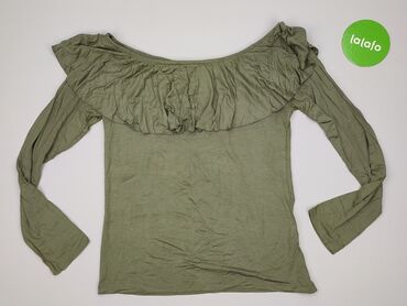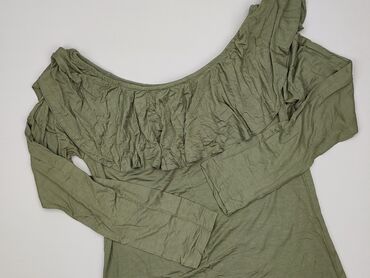 Bluzka damska z odkrytymi ramionami (hiszpanka) - Kolor: oliwkowy/khaki - Długość rękawa: długi - Krój: dopasowany, prosta linia dołu - Dekolt: szeroki, opadający na ramiona - Materiał: cienka, ela...Stan:
