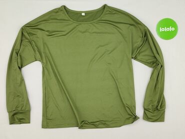 Bluzka damska z długim rękawem - Kolor: oliwkowa z melanżowym efektem - Krój: luźny, lekko wydłużony tył, okrągły dekolt - Materiał: cienka, miękka dzianina (prawdopodobnie bawełna z domieszką – m...