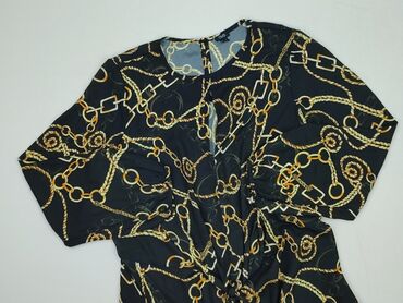 Bluzka damska z długim rękawem, rozmiar XL. - Kolor: czarne tło z wielobarwnym, kwiatowym nadrukiem w okręgach. - Fason: luźniejszy, długość za biodra; rękawy 3/4–długie; okrągły dekolt. - Materia...