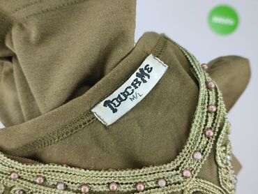 Bluzka damska APT.9, rozmiar M - Kolor: oliwkowa z czarnym, drobnym nadrukiem „kresek” - Fason: luźniejszy, z dekoltem w serek - Rękawy: długie, zakończone gumką; na rękawach wstawki z koronki - Oz...
