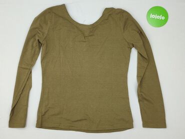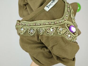 Bluzka damska, kolor oliwkowy/khaki, rozmiar XL. - Fason: luźna bluzka z długim rękawem - Dekolt: w serek z krótką listwą guzikową (3 guziki z przodu) - Przód: ozdobny, ażurowy panel z koronki o r...