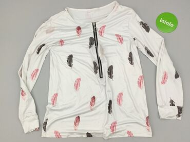 Bluzka damska E.M.G Collection, rozmiar 42 (metka: EU 42 / UK 12). - Kolor: biały z nadrukiem ptaków w odcieniach różu, niebieskiego i czerni - Fason: luźny, z elastyczną gumką na dole (ściągacz) ...