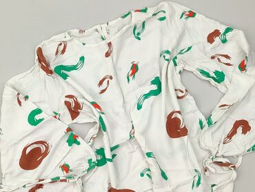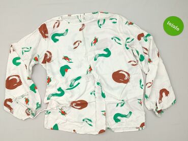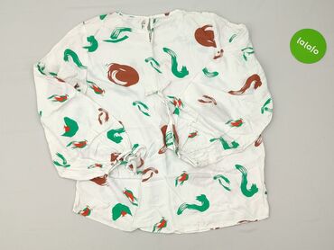 Bluzka damska z nadrukiem ptaków i kwiatów - Kolor tła: kremowa biel - Wzór: rysunkowe, czarno-białe kwiaty z kolorowymi ptakami (odcienie niebieskiego, turkusu, zieleni i rudości) - Krój: luźny, ...