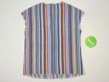 Bluzka damska FER bluse, rozmiar 40 - Fason: koszulowy, zapinana na guziki z przodu - Kołnierzyk: klasyczny - Rękaw: krótki - Wzór/kolor: intensywne pasy i desenie w odcieniach niebieskiego i ziel...