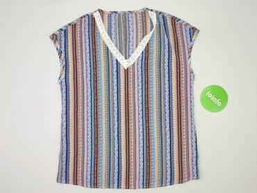 Bluzka damska Repeat, rozmiar L - Fason: luźna, z marszczeniem pod dekoltem i przy karczku; dół lekko zaokrąglony - Rękawy: długie, bufiaste, zakończone gumką - Dekolt: wiązany na wstążkę - Materi...