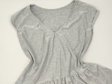 Szara bluzka damska z krótkim rękawem - Marka: Laura Torelli Collection - Rozmiar: M (na metce) - Krój: luźny, prosty, z lekko obniżoną linią ramion - Dekolt: okrągły - Wzór: drobne białe kwiatki ...