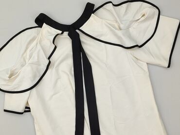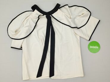 Elegancka bluzka damska z koroną - Kolor: ecru/śmietankowy z czarnymi detalami - Materiał: 100% poliester (lekka, półprzezroczysta tkanina) - Rozmiar z metki: M - Krój: luźny, prosty - Rękawy: dłu...