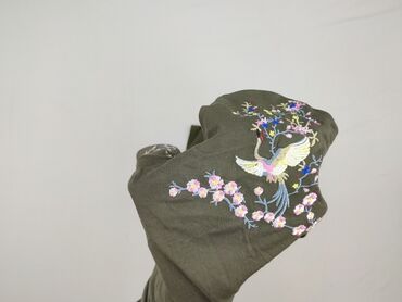 Długi rękawTa bluzka damska w kolorze khaki marki Orsay wyróżnia się okrągłym dekoltem oraz długimi, szerokimi rękawami zakończonymi ściągaczami. Na przodzie bluzki znajduje się ozdobny haft przedstawiający ptaki i kwiaty, nadający jej unikalny charakter. Krój bluzki jest luźny, co zapewnia komfort noszenia i swobodę ruchów. Idealna do casualowych stylizacji, pasuje zarówno do spodni, jak i spódnic, dodając stylizacji nuty romantyzmu i oryginalności. Jest to wszechstronny element garderoby, który sprawdzi się na wiele okazji.