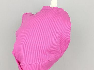 Bluzka damska z prążkowanej dzianiny, kolor pudrowy róż. - Fason: dopasowany, z długim rękawem - Dekolt: półgolf - Detal: ozdobne, krzyżujące się pasy/marszczenie w pasie z przodu - Długość: do bi...Stan: