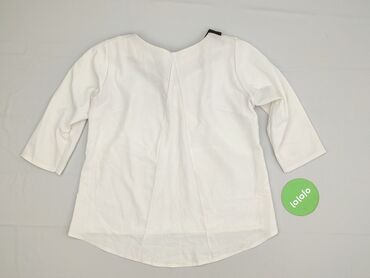 Biała bluzka damska M/L, Made in Britain - Krój: prosty, z krótkim rękawem i okrągłym dekoltem - Rozmiar z metki: M/L - Skład materiału: 95% poliester, 5% elastan – miękka, elastyczna dzianina o d...