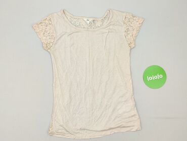 Bluzka damska z ażurowymi rękawami - Rozmiar: S (WOMEN S – na metce) - Kolor: jasny beż/ecru - Krój: klasyczny T-shirt z okrągłym dekoltem - Rękawy: krótkie, bufiaste, z ażurowym haftem (ang. brod...