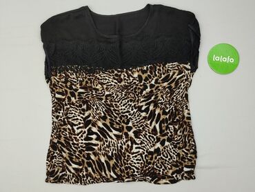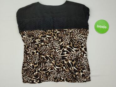 Krótki rękawBluzka damska z koronkową górą i zwierzęcym wzorem.