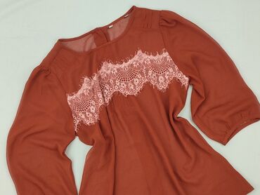 Rękaw 3/4Bluzka damska w kolorze ceglastym z koronkową wstawką