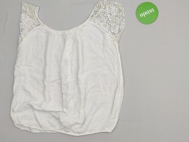 Biała damska bluzka ażurowa - Krój: luźny, prosta linia z krótkim rękawem - Dekolt: w kształcie litery V - Materiał: lekka, przewiewna tkanina bawełniana z haftem angielskim/ażurem (kwiatowe dziur...