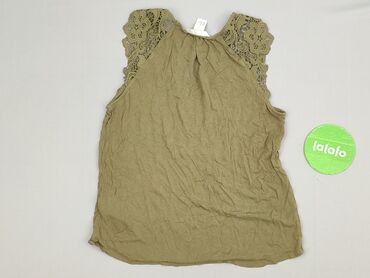 Bluzka damska Reserved, rozmiar L - Krój: bez rękawów, delikatnie dopasowana - Kolor: oliwkowa zieleń - Detale: efektowna koronkowa wstawka u góry z przodu i na plecach, ażurowe koronkowe „rękawki...
