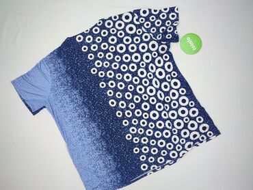 Bluzka damska XXXL – batik, wzór z aplikacją - Kolor: odcienie niebieskiego (efekt batiku/marmurkowy). - Rozmiar z metki: XXXL. - Skład materiału: 70% wiskoza, 30% poliester. - Krój: luźny, z krót...